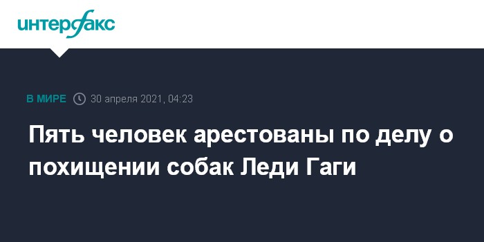Москва. 30 апреля. INTERFAX.RU - Пять человек были арестованы за кражу двух французских бульдогов, принадлежащих американской певице Леди Гаге, сообщается на сайте BBC News.