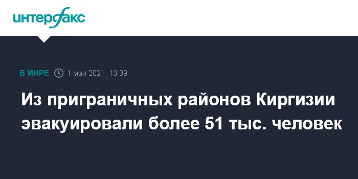 Москва. 1 мая. INTERFAX.RU - Более 51 тысячи граждан Киргизии эвакуированы из зоны приграничного конфликта с Таджикистаном, сообщила в субботу "Интерфаксу" пресс-секретарь Баткенской областной администрации Чолпон Бердикулова.
