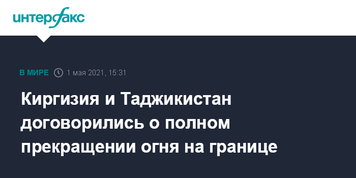Москва. 1 мая. INTERFAX.RU - Главы Госкомитетов нацбезопасности Киргизии и Таджикистана Камчыбек Ташиев и Саймумин Ятимов по итогам встречи в Баткенской области подписали протокол о прекращении огня на приграничной территории.