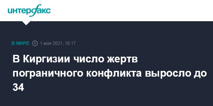 Москва. 1 мая. INTERFAX.RU - В ходе конфликта на границе с Таджикистаном погибли 34 гражданина Киргизии, 173 получили ранения, сообщает в субботу Минздрав страны.