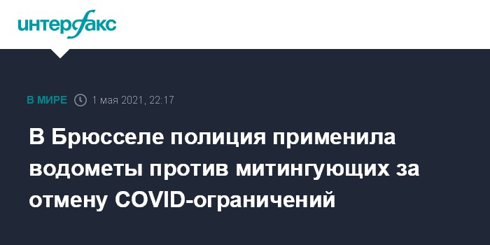 Москва. 1 мая. INTERFAX.RU - Бельгийская полиция применила водометы в парке Камбрский лес в Брюсселе, где выступающие против антикоронавирусных ограничений устроили несанкционированную акцию.