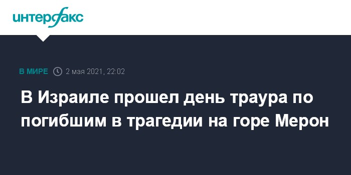 Москва. 2 мая. INTERFAX.RU - В Израиле прошел национальный день траура по погибшим в давке во время празднования Лаг ба-Омера на горе Мерон 29 апреля. Об этом сообщает BBC News.
