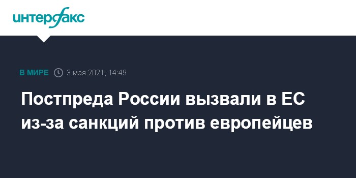 30 апреля МИД России сообщил о запрете на въезд в страну для восьми граждан ЕС в ответ на введенные 2 и 22 марта Советом ЕС ограничительные меры в отношении шести российских граждан.