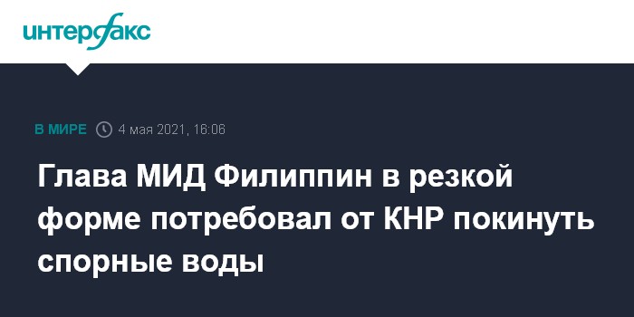 Москва. 4 мая. INTERFAX.RU - Глава МИД Филиппин Теодоро Локсин потребовал от Китая "убираться куда подальше" из спорных вод в Южно-Китайском море.