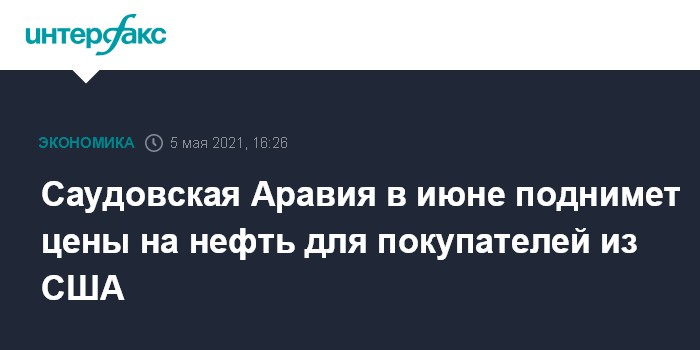Москва. 5 мая. INTERFAX.RU - Саудовская Аравия в июне поднимет цены на нефть для покупателей из США на $0,2 за баррель, при этом снизит их для остальных регионов, сообщила госкомпания Saudi Aramco.
