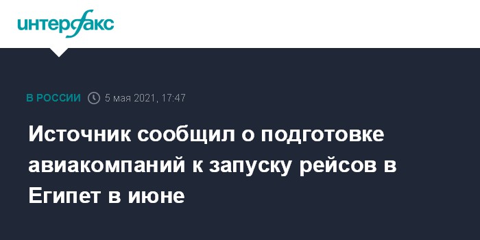 Москва. 5 мая. INTERFAX.RU - Российские авиакомпании готовятся возобновить полеты в Египет в июне, сообщил "Интерфаксу" источник в одной из авиакомпаний.