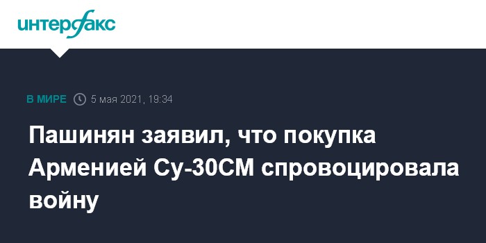 Москва. 5 мая. INTERFAX.RU - И.о. премьер-министра Армении Никол Пашинян считает, что войну в Нагорном Карабахе подтолкнула покупка республикой самолетов СУ-30СМ.
