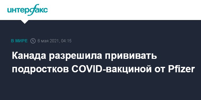 Москва. 6 мая. INTERFAX.RU - Министерство здравоохранения Канады в среду одобрило применение вакцины Pfizer/BioNTech от коронавируса у подростков. Об этом сообщается на сайте ведомства.