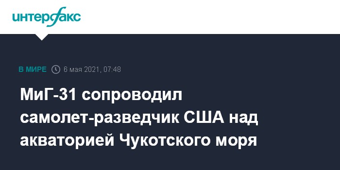 Москва. 6 мая. INTERFAX.RU - Российские военные подняли в четверг истребитель-перехватчик дальнего радиуса действия МиГ-31 для сопровождения над Чукотским морем самолета-разведчика США, сообщил Национальный центр управления обороной РФ.