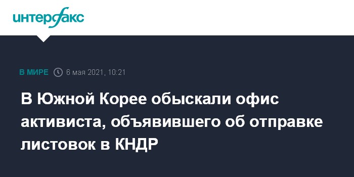 Москва. 6 мая. INTERFAX.RU - Сотрудники полиции в Южной Кореи провели обыски в офисе активиста, который заявил, что отправил в КНДР сотни тысяч пропагандистских листовок, сообщает агентство Associated Press.