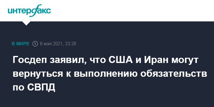 Он добавил, что Тегеран выдвинул требования, которые, по мнению США, "выходят за рамки того, что должно произойти, чтобы США вернулись к соблюдению" СВПД. Представитель госдепа добавил, что в Иране также "еще не согласились с шагами, которые им было бы необходимо предпринять", чтобы вернуться к соблюдению обязательств по ядерной сделке. Ближневосточные СМИ в свою очередь сообщают, что в госдепе признали возможность достигнуть соглашения до иранских выборов при условии, что Тегеран примет соответствующее политическое решение.