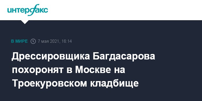Дрессировщика Багдасарова похоронят в Москве на Троекуровском кладбище