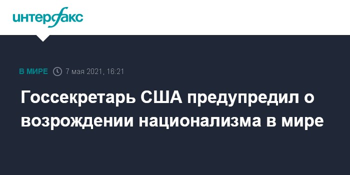 Москва. 7 мая. INTERFAX.RU - Госсекретарь США Энтони Блинкен в пятницу на заседании Совета безопасности ООН заявил о возрождении национализма в мире и усилении соперничества между странами.