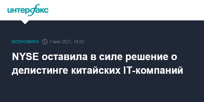 NYSE оставила в силе решение о делистинге китайских IT-компаний