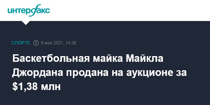 Москва. 9 мая. INTERFAX.RU - Майка знаменитого американского баскетболиста Майкла Джордана, в которой он выступал в своем втором сезоне за команду Университета Северной Каролины, ушла с молотка за $1,38 млн.