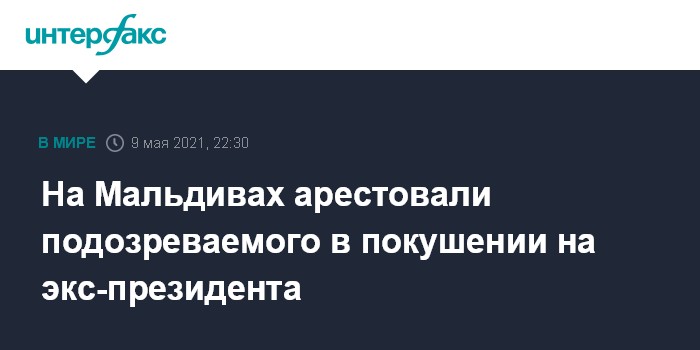Москва. 9 мая. INTERFAX.RU - Полиция Мальдивских островов заявила, что арестовала предполагаемого подозреваемого в покушении на бывшего президента страны, действующего спикера парламента Мохамеда Нашида, сообщает BBC News.