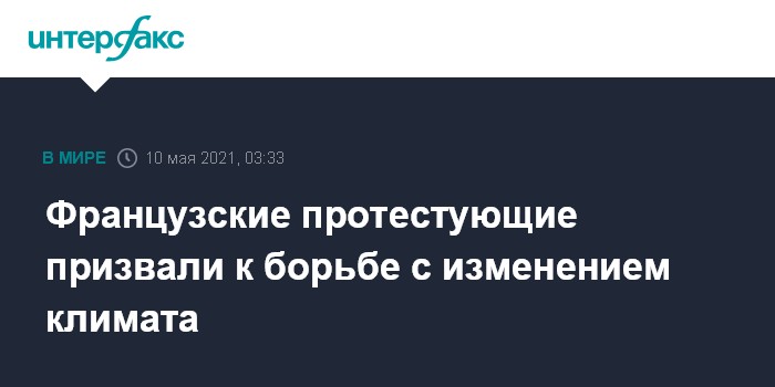 Москва. 10 мая. INTERFAX.RU - Тысячи демонстрантов вышли на улицы Парижа и других французских городов в воскресенье, призывая к более масштабным мерам в борьбе с изменением климата, сообщает телеканал ABC News.