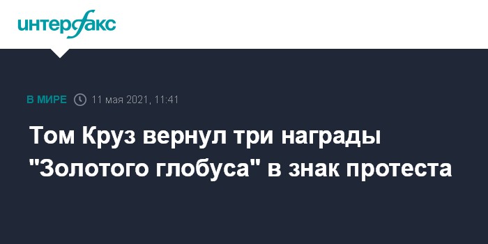 Москва. 11 мая. INTERFAX.RU - Том Круз вернул Голливудской ассоциации иностранной прессы три награды "Золотого глобуса" в знак протеста против недостаточного разнообразия в жюри премии, сообщил телеканал CNN со ссылкой на источник, близкий к актеру.