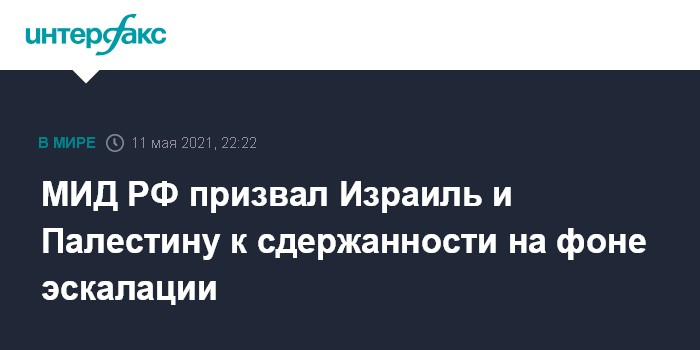 Москва. 11 мая. INTERFAX.RU - В МИД РФ выразили обеспокоенность ситуацией в Иерусалиме и вокруг сектора Газа и призвали израильскую и палестинскую стороны проявлять сдержанность и не предпринимать шагов, чреватых дальнейшей эскалацией напряженности.