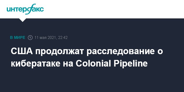 Хакерская атака 7 мая парализовала Colonial Pipeline - крупный топливопровод, по которому доставляют горючее из Техаса на восточное побережье США. Его работа все еще не восстановлена.