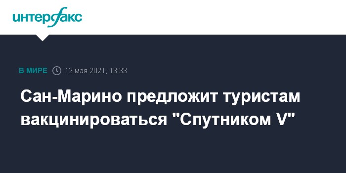 Москва. 12 мая. INTERFAX.RU - Сан-Марино с 17 мая планирует запустить кампанию для туристов, желающих вакцинироваться "Спутником V", заявил министр туризма страны Федерико Педини Амати.
