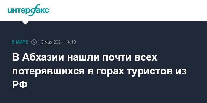 Москва. 13 мая. INTERFAX.RU - Группа российских туристов, затерявшихся в горах Сухумского района в Абхазии, обнаружена абхазскими спасателями. По сообщению пресс-службы спасательного ведомства, они уже доставлены в Сухум.