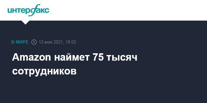 Москва. 13 мая. INTERFAX.RU - Американский интернет-ритейлер Amazon.com сообщил, что планирует нанять 75 тыс. сотрудников.