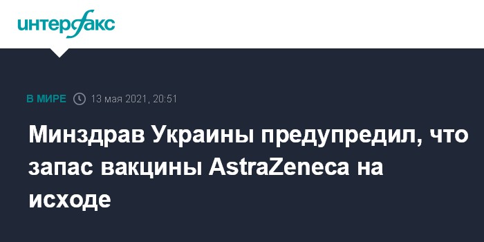 Москва. 13 мая. INTERFAX.RU - В пунктах прививок по всей Украине использована почти вся вакцина AstraZeneca против COVID-19, предназначенная для иммунизации первой дозой, сообщает министерство здравоохранения страны.