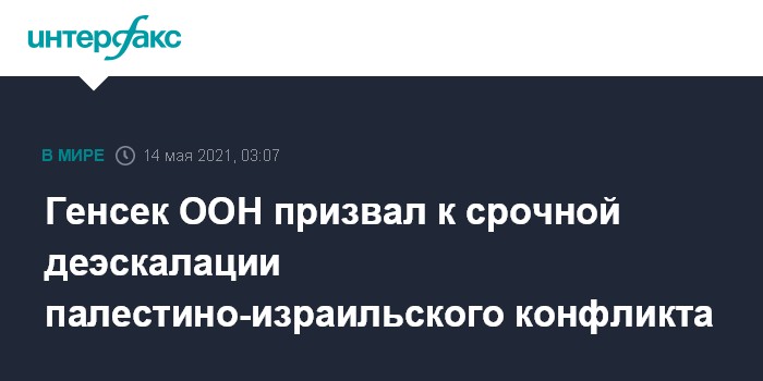 Москва. 14 мая. INTERFAX.RU - Генеральный секретарь ООН Антониу Гутерриш призвал немедленно прекратить военные действия между Израилем и сектором Газа.