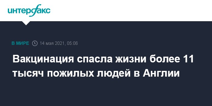 Москва. 14 мая. INTERFAX.RU - В Англии кампания массовой вакцинации населения от COVID-19 предотвратила смерть 11,7 тыс. людей в возрасте 60 лет и старше, а 33 тыс. пациентов старше 65 лет благодаря прививке не понадобилась госпитализация. Такие данные содержатся в исследовании Агентства общественного здравоохранения Англии (PHE), результаты которого опубликованы в пятницу.