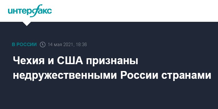 Москва. 14 мая. INTERFAX.RU - Правительство утвердило список недружественных иностранных государств, туда вошли Чехия и США. Такое распоряжение от 13 мая опубликовано на официальном портале правовой информации.