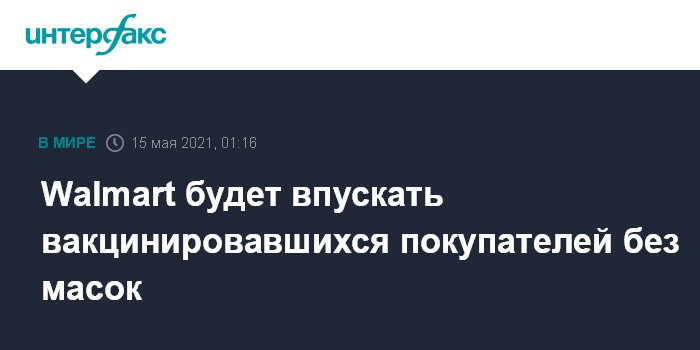 Москва. 15 мая. INTERFAX.RU - Ритейлер Walmart принял решение впускать покупателей, вакцинировавшихся от коронавируса, без масок в некоторые магазины. Об этом сообщает CNN.