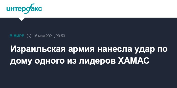 Москва. 15 мая. INTERFAX.RU - Израильские военные заявили, что нанесли удар с воздуха по дому одного из политических лидеров движения ХАМАС в секторе Газа, сообщает Associated Press.