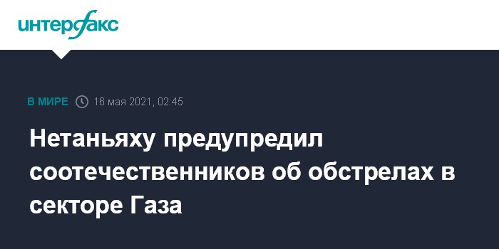 Москва. 16 мая. INTERFAX.RU - Израильтян, столкнувшихся с ракетными обстрелами из сектора Газа, ожидает несколько непростых дней, предупредил премьер Израиля Биньямин Нетаньяху.