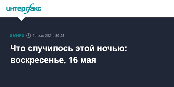 Москва. 16 мая. INTERFAX.RU - Краткая сводка событий, произошедших к утру: