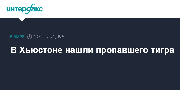 Москва. 16 мая. INTERFAX.RU - Пропавший неделю назад тигренок был найден в Хьюстоне, сообщило в субботу полицейское управление города, передает NBC News.