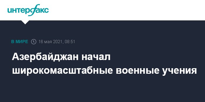 Москва. 16 мая. INTERFAX.RU - Вооруженные силы Азербайджана приступили к учениям, которые продлятся до 20 мая, сообщает в воскресенье Минобороны страны.