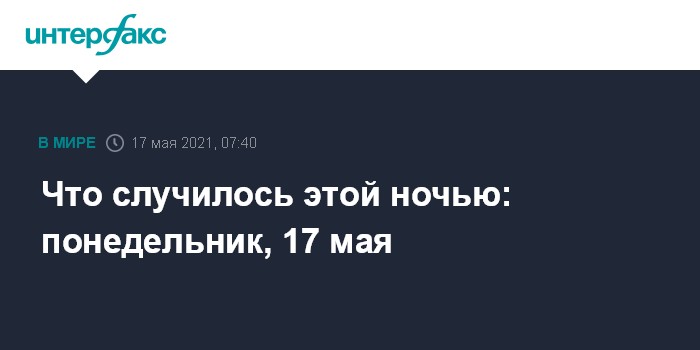 Москва. 17 мая. INTERFAX.RU - Краткая сводка событий, произошедших к утру: