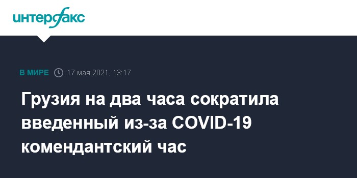Москва. 17 мая. INTERFAX.RU - Действующий в рамках борьбы с коронавирусом межведомственный координационный совет Грузии в понедельник принял решение сократить на два часа ранее введенные ограничения на передвижение граждан в вечернее и ночное время.
