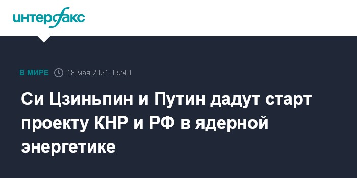 Си Цзиньпин и Путин дадут старт проекту КНР и РФ в ядерной энергетике