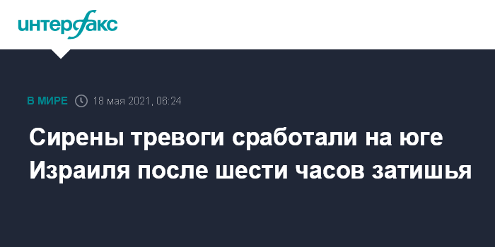 Сирены тревоги сработали на юге Израиля после шести часов затишья