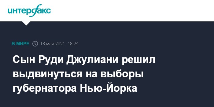 Москва. 18 мая. INTERFAX.RU - Эндрю Джулиани, сын бывшего мэра Нью-Йорка и бывшего адвоката Дональда Трампа - Руди Джулиани - объявил, что выдвинется на пост губернатора штата Нью-Йорк в 2022 году и запустил предвыборный сайт.