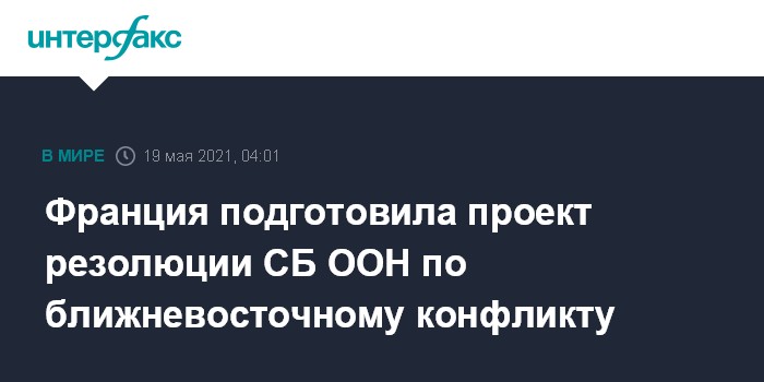 Москва. 19 мая. INTERFAX.RU - Франция, Египет и Иордания подготовили проект резолюции СБ ООН, призывающую Израиль и Палестину к прекращению огня, сообщила газета The Times of Israel со ссылкой на офис французского президента.