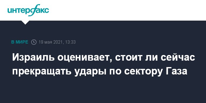 Москва. 19 мая. INTERFAX.RU - Власти Израиля проводят оценку того, настало ли время прекратить операцию по нанесению ударов по палестинским группировкам из сектора Газа, сообщают в среду израильские СМИ со ссылкой на армейские источники.