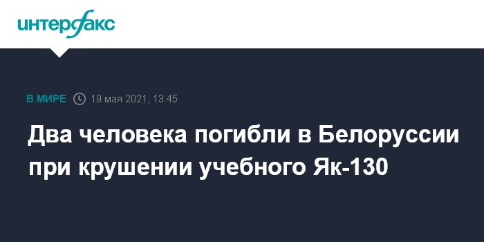 Москва. 19 мая. INTERFAX.RU - Учебно-тренировочный самолет Як-130 Лидской штурмовой авиабазы разбился под Барановичами, погибли два пилота, сообщили в министерстве обороны Белоруссии в среду.