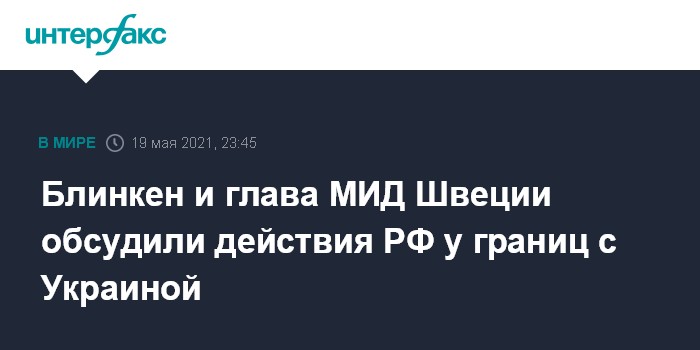 Москва. 19 мая. INTERFAX.RU - Госсекретарь США Энтони Блинкен в среду на встрече с министром иностранных дел Швеции и действующим председателем Организации по безопасности и сотрудничеству в Европе (ОБСЕ) Анн Линде обсудил обеспокоенность действиями России близ Украины, конфликт в Нагорном Карабахе и гуманитарный кризис в Йемене. Переговоры прошли на полях министерской встречи Арктического совета.