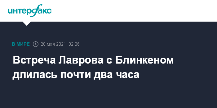 Москва. 20 мая. INTERFAX.RU - В Рейкьявике завершилась встреча глав внешнеполитических ведомств России и США Сергея Лаврова и Энтони Блинкена.