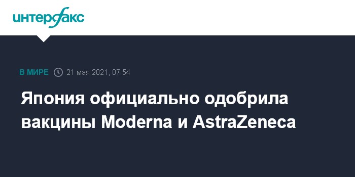 Москва. 21 мая. INTERFAX.RU - Японское правительство в пятницу официально одобрило вакцины против COVID-19 компаний Мoderna и AstraZeneca, сообщают местные СМИ.