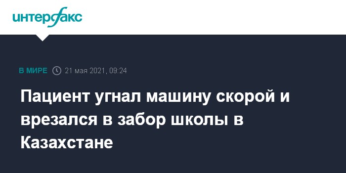 Москва. 21 мая. INTERFAX.RU - В селе Байтерекского района Западно-Казахстанской области пациент угнал машину скорой помощи и устроил на ней ДТП, сообщила пресс-служба областного департамента полиции Казахстана.