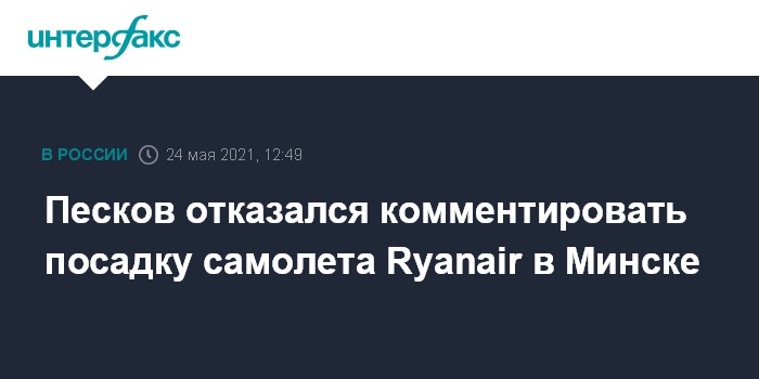 Песков отказался комментировать посадку самолета Ryanair в Минске